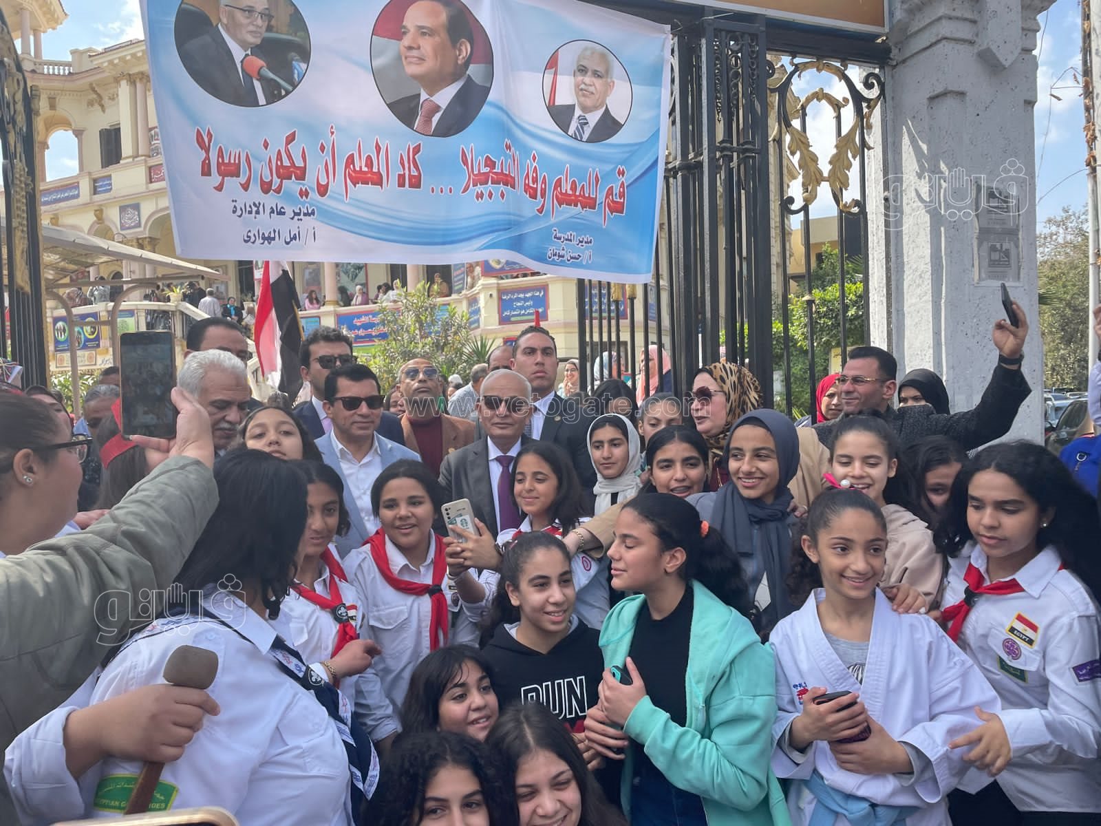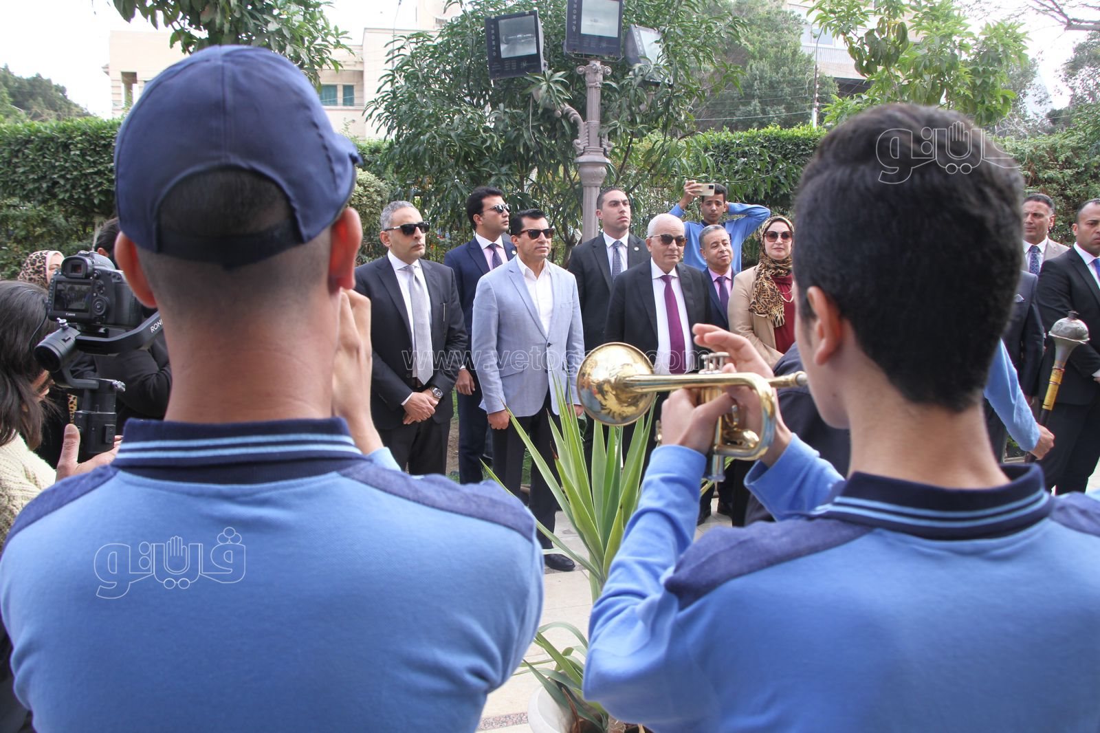 ورافق الوزير خلال الجولة، الدكتور أحمد المحمدى مساعد الوزير لشئون المديريات، والدكتورة إيمان حسن رئيس الإدارة المركزية للأنشطة الطلابية، وأيمن موسى مدير مديرية التربية والتعليم بالقاهرة، والدكتورة چيهان أنور علام مدير عام الإدارة العامة للتربية الرياضية والعسكرية، وكان في استقبال الوزيران فريق الكشافة بالمدرسة، بالأناشيد الوطنية.