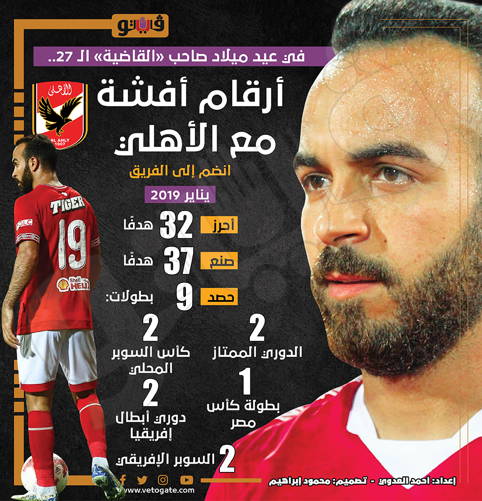 في عيد ميلاد صاحب «القاضية» الـ 27.. أرقام أفشة مع الأهلي (إنفوجراف)