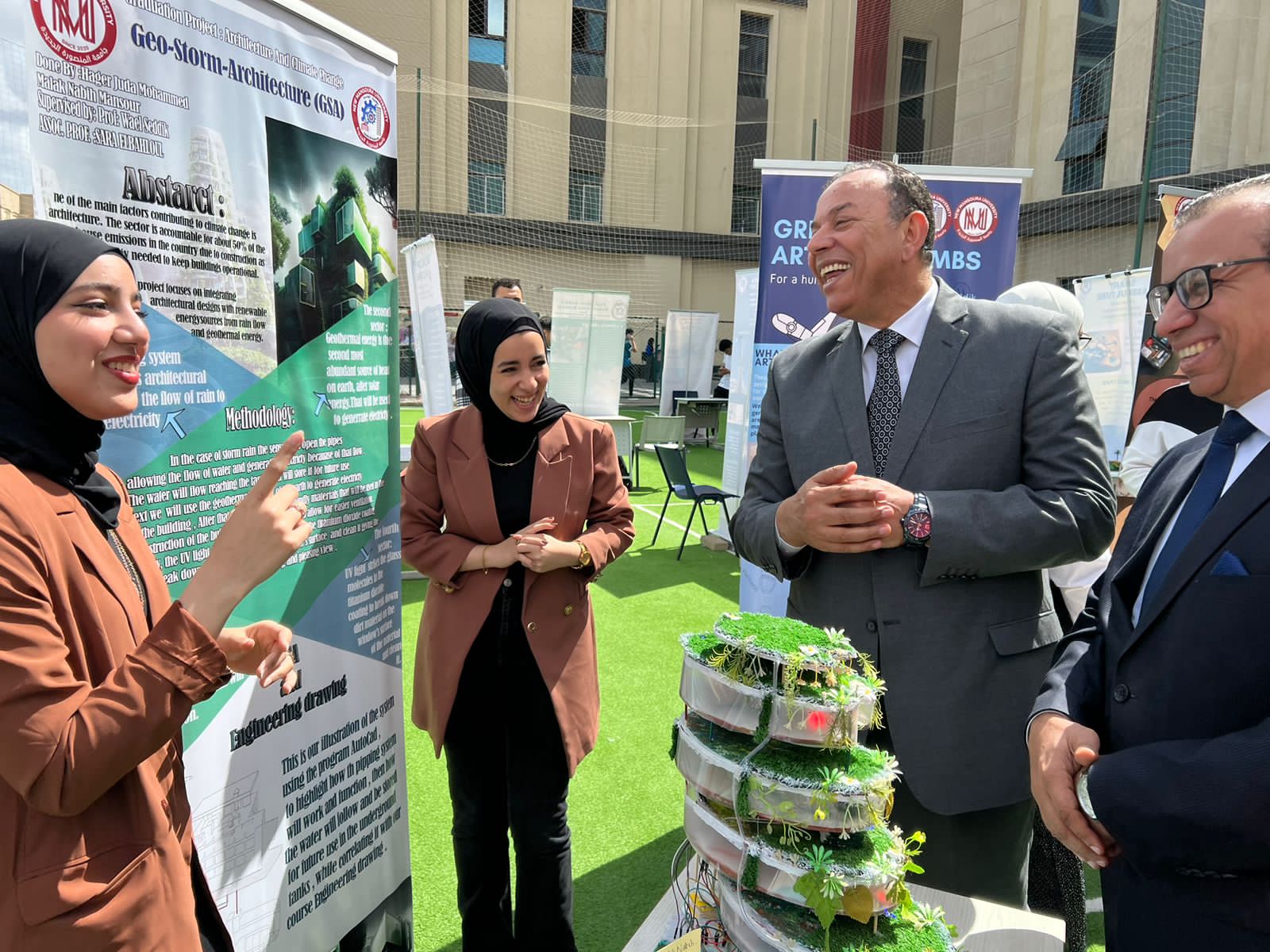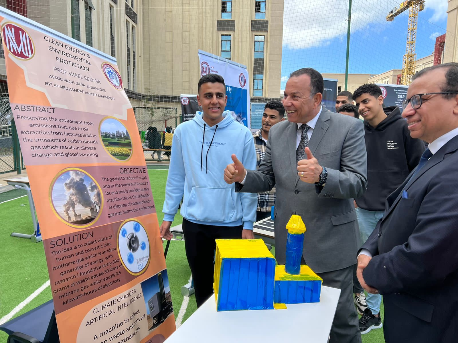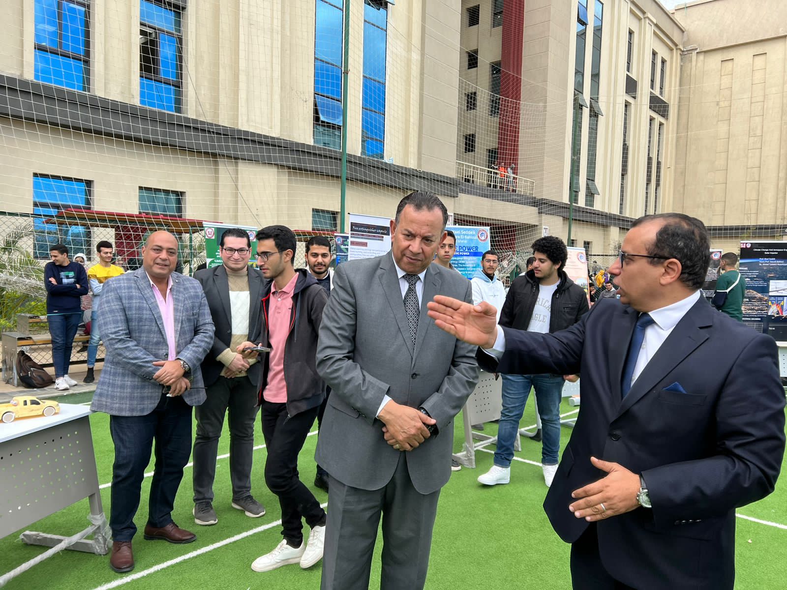 وقد أوضح الدكتور معوض الخولي بان هذه الفعاليات تمت في مثل هذا التوقيت من العام الماضي لطلاب الفرقة الأولى حاليا بالكلية وكانت الجامعه من المؤسسات التعليميه الأولى التي ربطت طلابها منذ اليوم بسوق العمل ومشاريع تخرجها وحثهم منذ اليوم الأول لالتحاقهم بكليه الهندسه علي تحقيق احلامهم وتحويلها عن طريق العلم والمثابرة والبحث العلمي لمشاريع تعود عليهم وعلي المجتمع بالنفع وتساهم في خدمه المجتمع وتنمية البيئة، واضاف رئيس الجامعه بأن اداء الطلاب كان مبهرا وأنه دائما ما يثبت شباب مصر بأنهم بخير دائما حيثما توافرت لهم الإمكانات العلمية والبشريه لمساعدتهم في تحقيق اهدافهم وان هذا هو النهج الذي تتبعه الجامعه منذ اليوم لنشاتها.