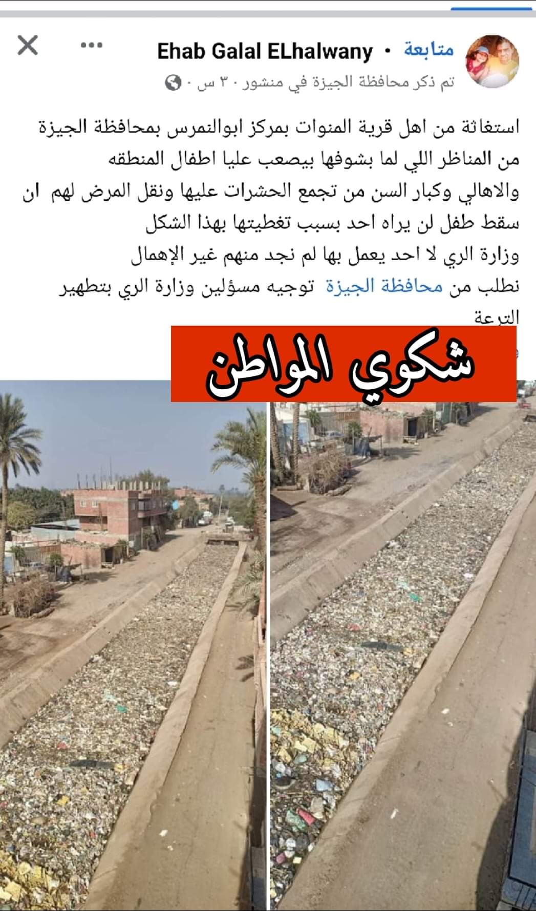 رفعت محافظة الجيزة مخلفات متراكمة بأحد المصارف بقرية المنوات التابعة لمدينة أبو النمرس وذاك في إطار استجابة لشكوي مواطن عبر صفحة الفيس بوك من تراكم المخلفات نظرًا للسلوكيات الخاطئة من البعض في إلقائها بمسار الترعة بقرية المنوات بمركز أبو النمرس وجاري استكمال رفع المخلفات ورفع كفاءة الترعة.