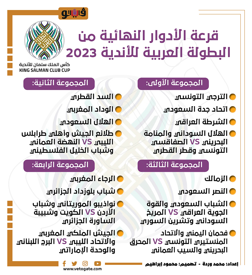 قرعة الأدوار النهائية من البطولة العربية للأندية 2023 (إنفوجراف)