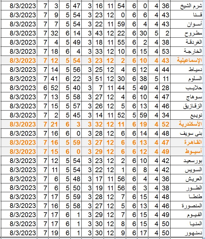مواقيت الصلاة اليوم وفقًا للتوقيت المحلي لمدينتي القاهرة والإسكندرية وعدد من مدن ومحافظات الجمهورية من واقع بيانات الهيئة العامة للمساحة