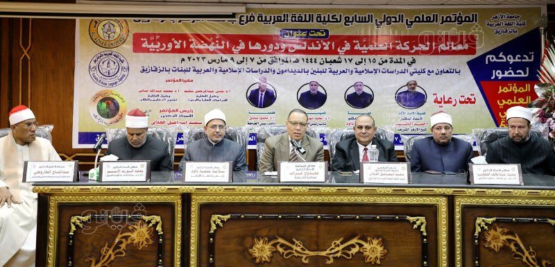 جاء ذلك خلال مشاركته فعاليات الجلسة الإفتتاحية للمؤتمر العلمي الدولي السابع، والذى تنظمه كليه اللغة العربية بجامعة الأزهر بالزقازيق، تحت رعاية فضيلة الأمام الأكبرالدكتور أحمد الطيب شيخ الأزهر الشريف بعنوان " معالم الحركة العلمية في الأندلس ودورها في النهضة الأوربية " بالتعاون مع كليتي الدراسات الإسلامية والعربية للبنين والبنات بالزقازيق وفاقوس في الفترة من 7 إلى 9 مارس 2023، في حضور الدكتور سلامة داوود رئيس جامعة الأزهروالدكتورمحمد أبو زيد الأمير نائب رئيس الجامعة للوجه البحري والدكتورمحمد عبد المالك نائب رئيس الجامعة للوجه القبلي والدكتور سعيد الهلالي عميد كليه اللغة العربية جامعه الأزهر بالزقازيق والدكتورحسن عبد الرحمن سليم وكيل كليه اللغة العربية للدراسات العليا والبحوث وعدد من عمداء الكليات وأساتذة جامعة الأزهر ونواب البرلمان.