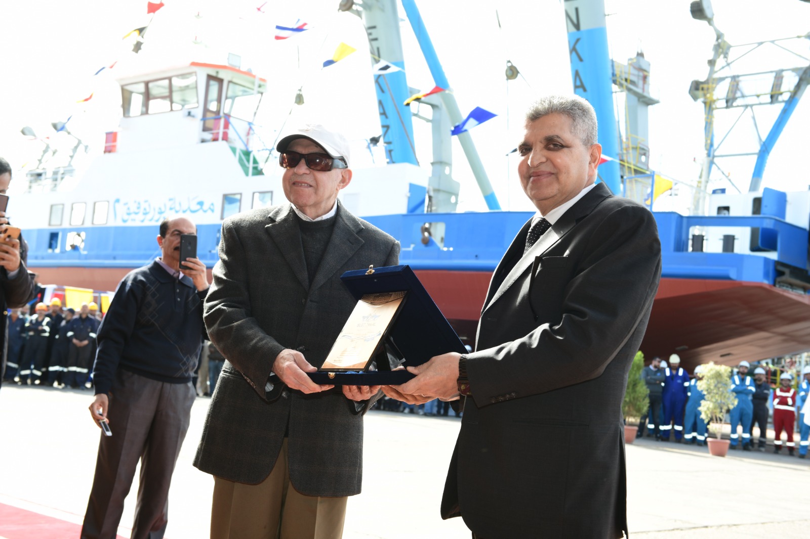وفي ختام الاحتفالية، حرص الفريق ربيع على تكريم رواد الهيئة ممن تحمل القاطرات الجديدة اسمهم تقديرا لمسيرتهم المهنية في خدمة الهيئة حيث قدم درع الهيئة إلى المهندس نبيل الهلالي، كما تسلم الربان علي فخري الدرع الخاص بالمهندس محمد بشير.
