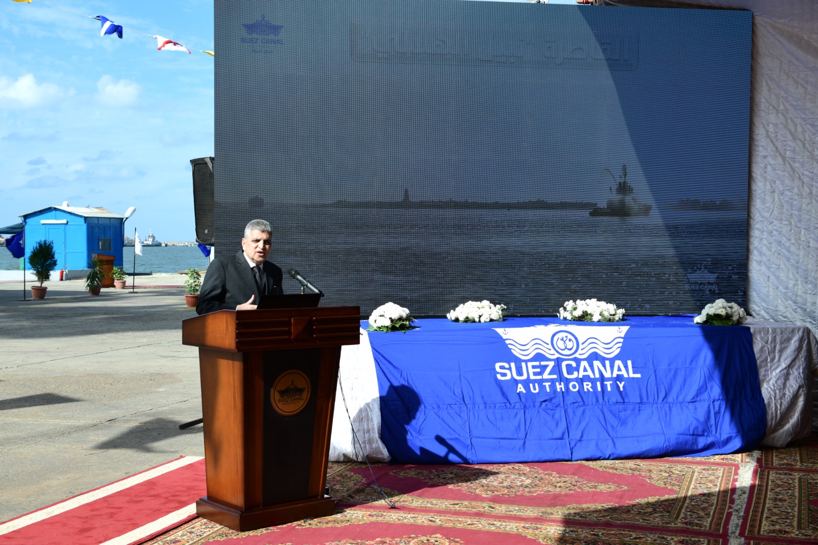 بدأت الاحتفالية من ساحة الترسانة، حيث شهد الفريق أسامة ربيع رفع العلم على القاطرتين" محمد بشير " و" نبيل الهلالي" بناء جديد بقوة شد 75 طن بترسانة جوانزو الصينية وفق التكنولوجيا الأحدث عالميا، وتعد القاطرة " نبيل الهلالي" إهداء من شركة EVER GREEN ضمن بنود التسوية التي عقدتها هيئة قناة السويس مع الشركة عقب حادث جنوح سفينة الحاويات" EVER GIVEN".