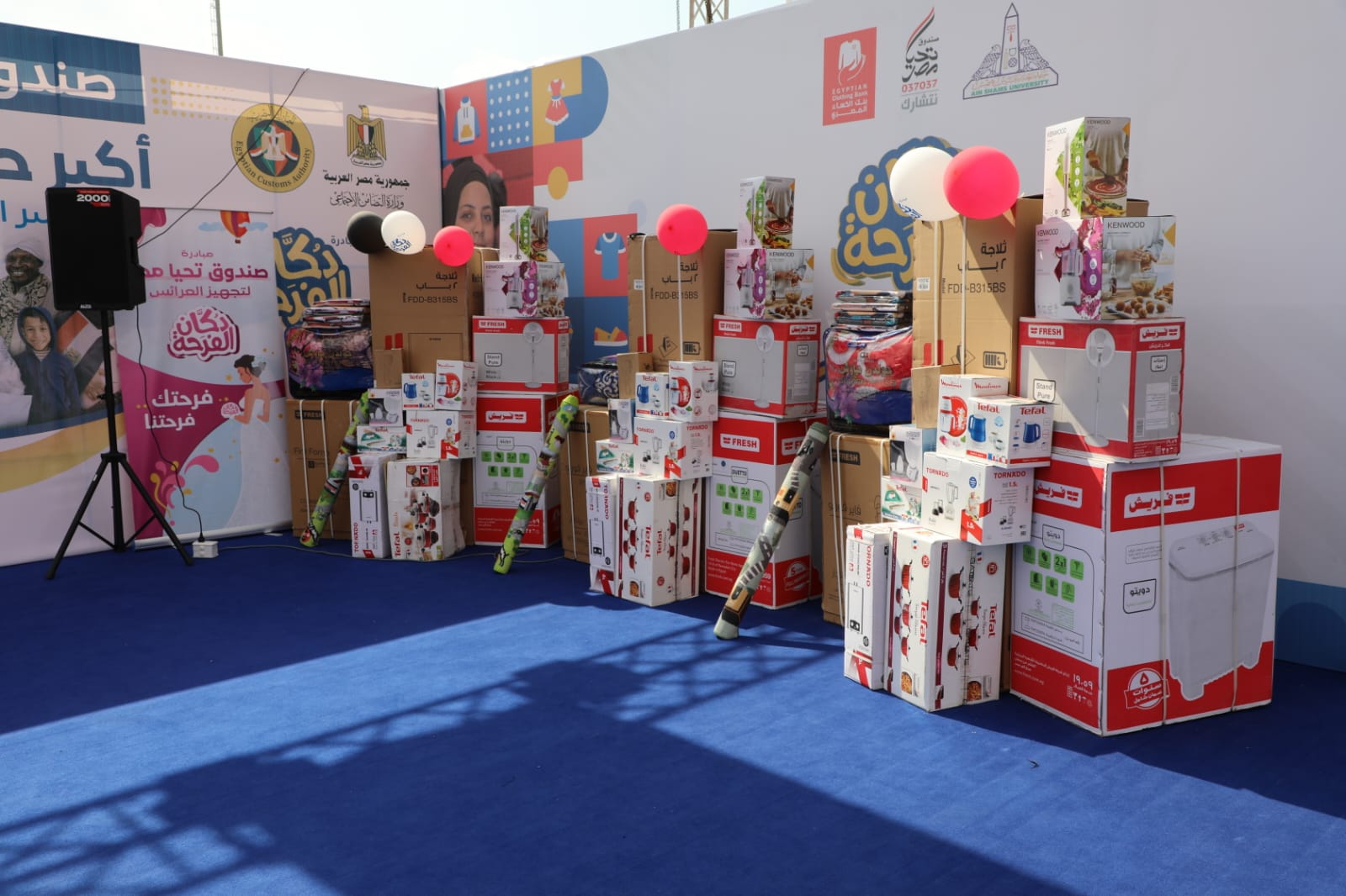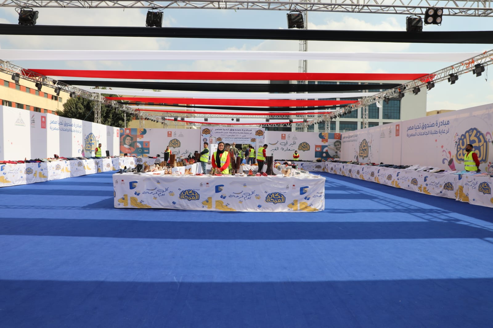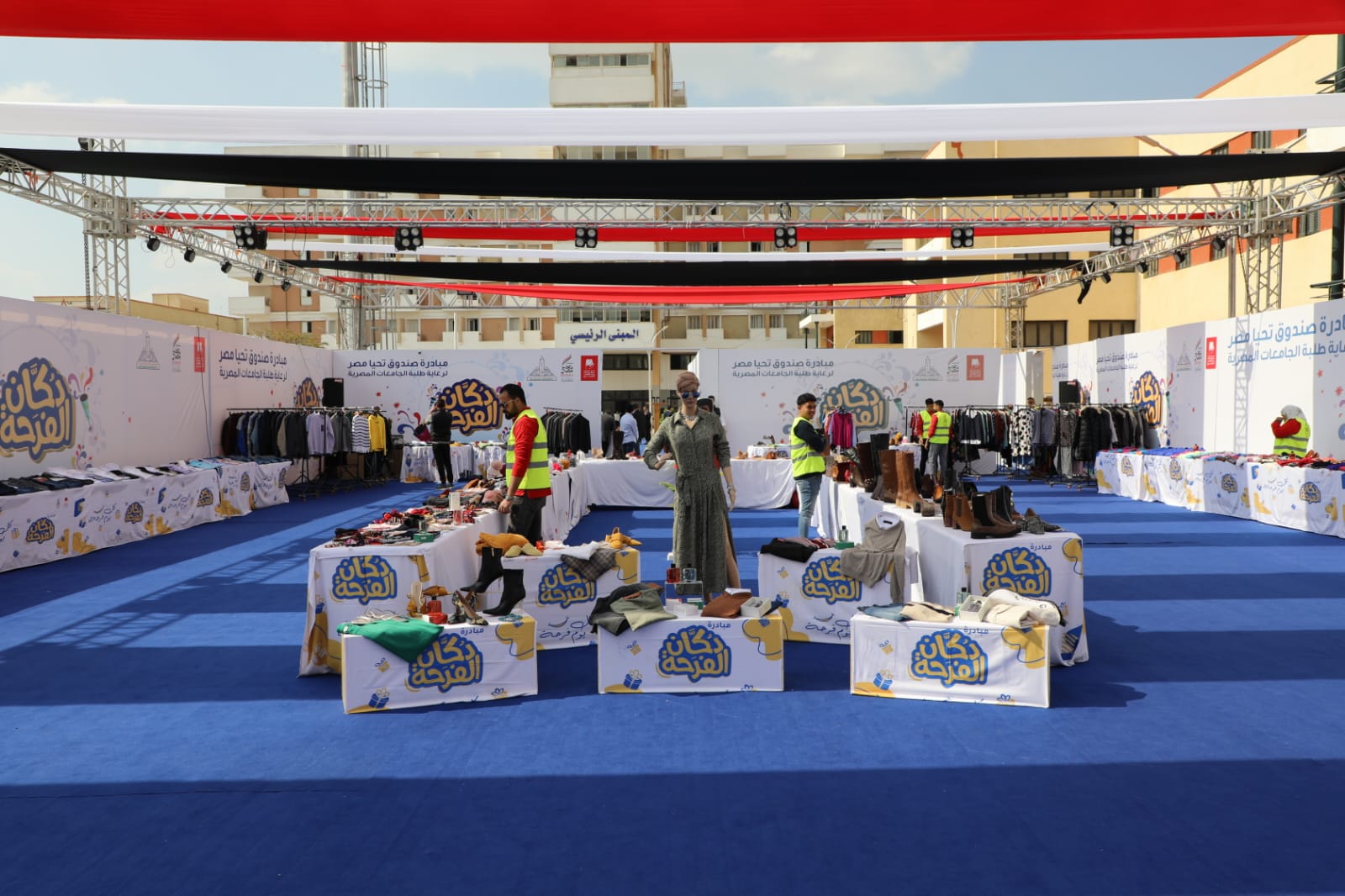 وقال المدير التنفيذي لصندوق تحيا مصر، تامر عبد الفتاح إن الاحتفالية تضمنت تنظيم معرضا يستمر لمدة 4 أيام يضم 20 ألف قطعة ملابس وأحذية واكسسوارات بالإضافة إلى منتجات العناية الشخصية المقدمة من شركة يونيليفر لرعاية 5 آلاف طالب مستحق بالجامعة، وذلك بالتعاون مع عدد من الشركات المصنعة والمستوردة للملابس الجاهزة ومنها شركة تاي هاوس، وشركة أليكس اباريلز وشركة تي أند سي وشركة هاي تك وشركة كانون جلوبال فضلا عن الملابس والأدوات الكتابية التي وفرتها مصلحة الجمارك المصرية، كما تم تجهيز 6 عرائس أولى بالرعاية من أبناء العاملين في الخدمات المعاونة بالجامعة بمستلزمات الزواج حيث تسلمت كل فتاة 22 جهازا كهربائيا ومفروشات وأجهزة منزلية ضمن مبادرة دكان الفرحة بالتعاون مع شركتي فريش والعربي جروب وتيفال.
