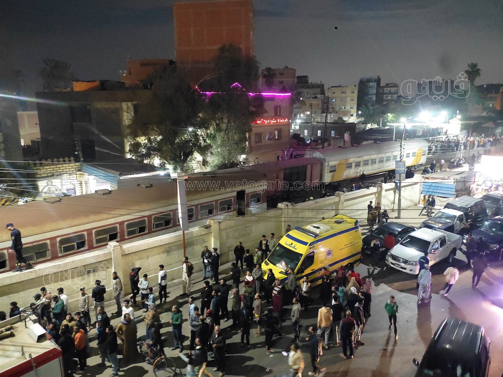 الدفع بسيارات إسعاف لموقع حادث قطار قليوب