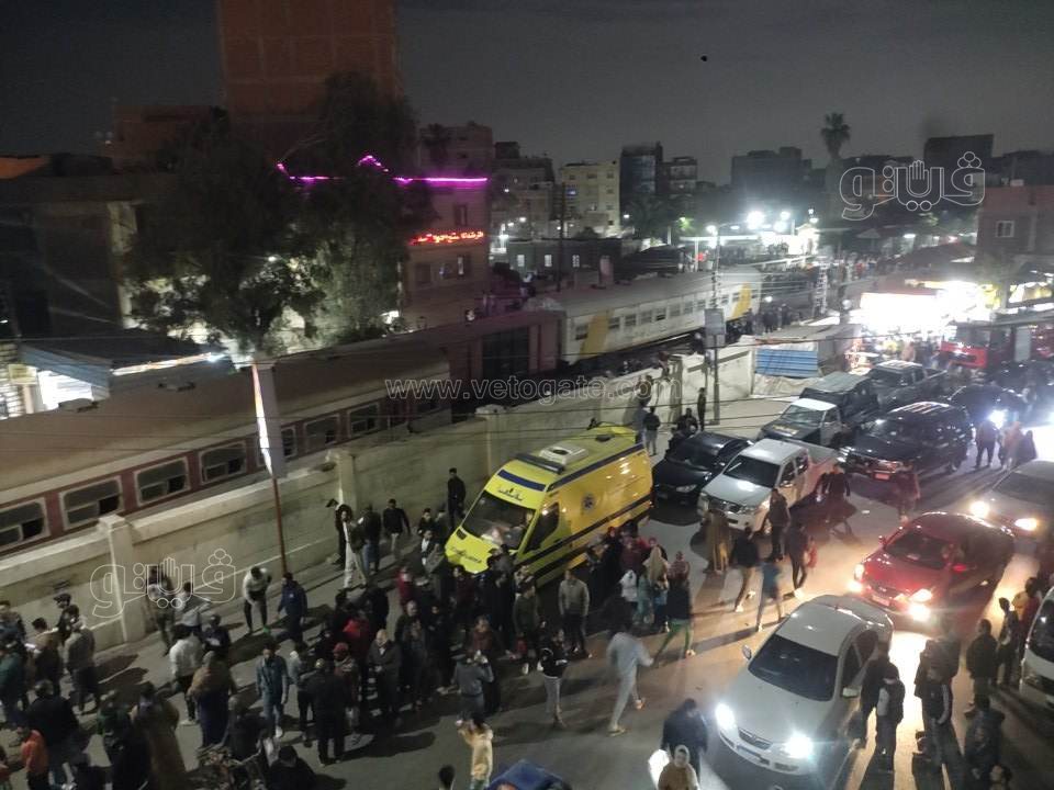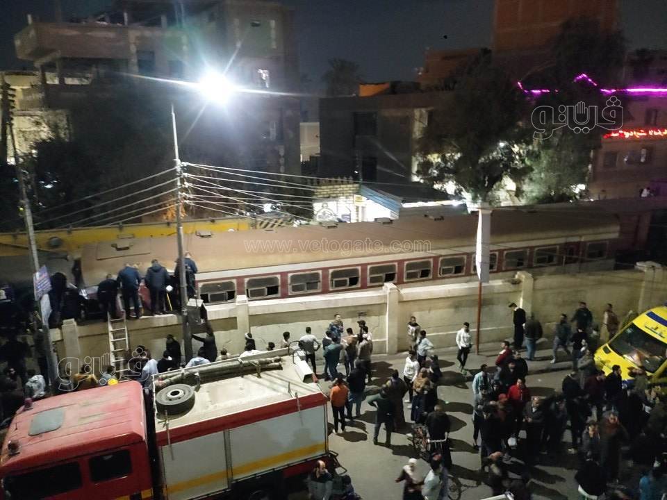 وبحسب بيان الهيئة القومية لسكك حديد مصر، نتج عن ذلك خروج الجرار والعربة الأولى عن القضبان وعلى الفور وجه الفريق مهندس كامل الوزير وزير النقل رئيس هيئة السكك الحديدية وكافة قيادات الهيئة بالتوجه لمكان الحادث والدفع بكافة معدات الرفع لموقع الحادث، والتنسيق مع وزارة الصحة لتقديم الخدمة الطبية اللازمة للمصابين وحصر أعداد الوفيات.