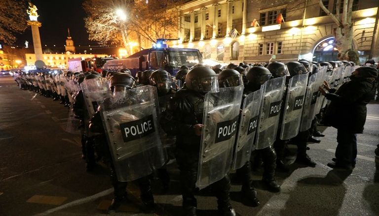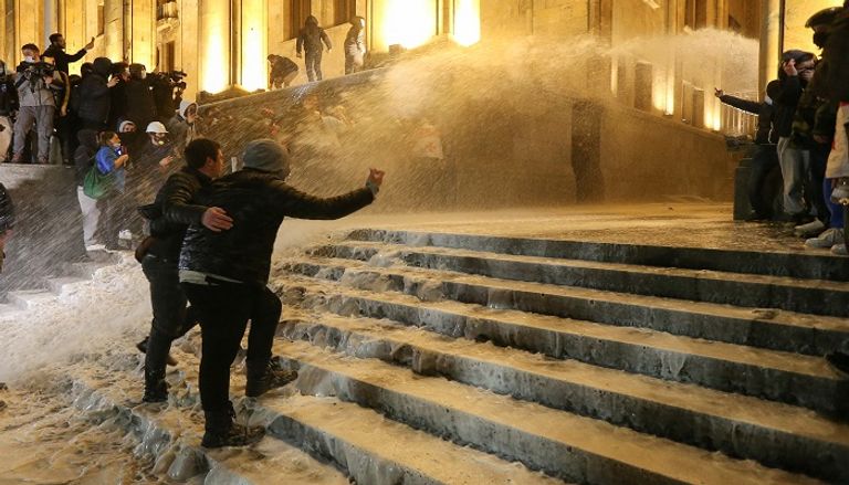 استخدمت الشرطة الجورجية الغاز المسيل للدموع وخراطيم المياه لتفريق تظاهرة في العاصمة تبليسي رفضًا لقانون "العملاء الأجانب".