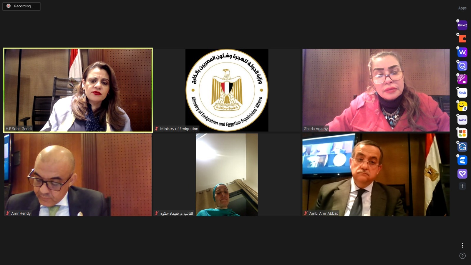 وأكدت وزيرة الهجرة أن اللقاء تضمن مناقشة أبرز الملفات ومستجدات أوضاع الجاليات حول العالم، والرد على أي محاولات للتشكيك في جهود الدولة الرامية إلى تحقيق أكبر عدد من الامتيازات للمقيمين بالخارج وتحقيق آمالهم، وتناولت الوزيرة مستجدات برنامج اتكلم عربي، وما تم من جهود من برامج جديدة باسم "جذورنا المصرية"، لزيادة الروابط مع المصريين بالخارج وتعزيز الهوية والربط بين أبنائنا في المدارس الدولية وأبنائنا بالخارج ليكونوا مرتبطين بتاريخهم بعرض اللقاءات الفعلية على مواقع المبادرة لتوسيع الاستفادة ولربط أبنائنا بالواقع والاستماع للمستجدات من مصادرها وربطهم بجذورهم العظيمة.