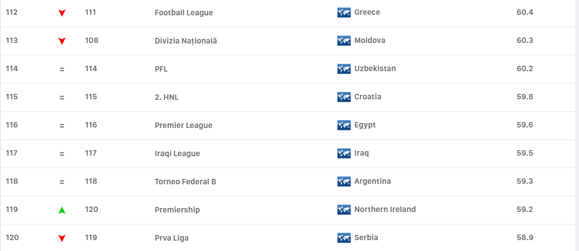 الدوري المصري ، احتل الدوري المصري مركزا متأخرا في تصنيف أفضل دوريات كرة القدم في العالم خلال عام 2023 بحسب ما كشف موقع teamform الإنجليزي.