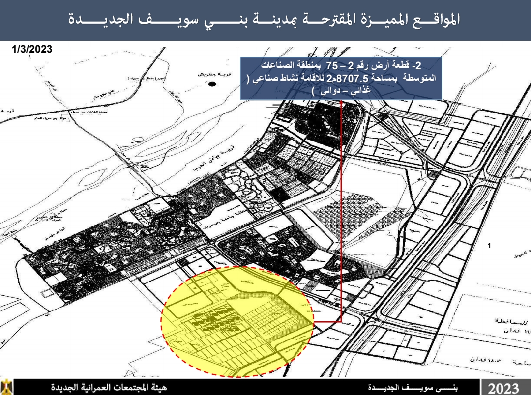 أراضي الإسكان المقترحة بنشاط صناعي بمدينة بني سويف الجديدة