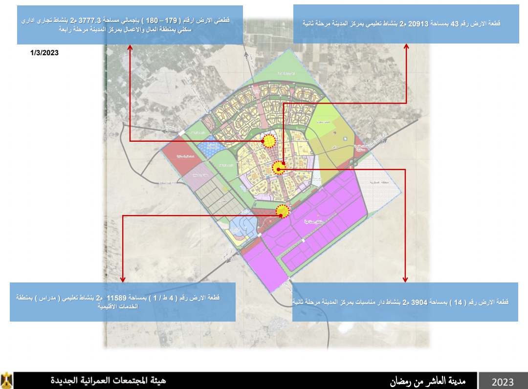 حددت هيئة المجتمعات العمرانية الجديدة قطع الأرض بـ مدينة العاشر من رمضان بنظام التخصيص الفوري بنشاطات مختلفة كالآتي: