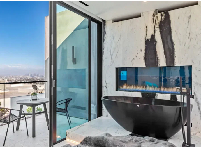 ويمكن رؤية المناظر البانورامية لوسط مدينة لوس أنجلوس من خلال جدار من أبواب فليتوود الزجاجية وفقًا للصحيفة، التي أوضحت أنه تم بناؤه العام الماضي.