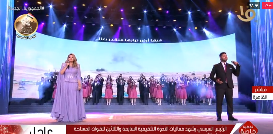وتم إعداد الفقرة الغنائية من قبل إدارة الشئون المعنوية للقوات المسلحة وبالتعاون مع وزارة الشباب والرياضة، وذلك بمشاركة عدد من النجوم أحمد سعد، ريهام عبد الحكيم، ومحمد شاهين، وسارة سليم سحاب، ومي فاروق وعدد من النجوم الشباب وبمشاركة كورال الشباب.