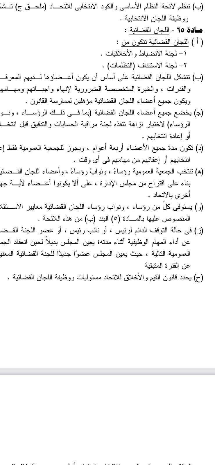 كما تؤكد اللائحة أن لجنة الانضباط هي لجنة مستقلة “منتخبة” تشكل داخل الاتحاد.