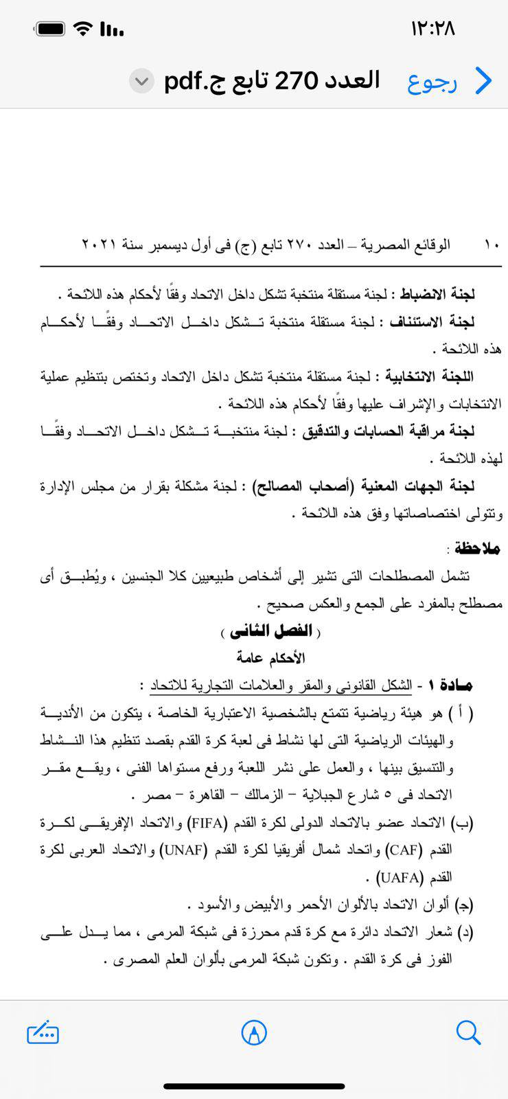 “فيتو” حصلت على بعض المستندات الخاصة بلائحة النظام الأساسي التي تشير إلى بطلان قرارات لجنة الانضباط خاصة وأنها جاءت بالتعيين وهو أمر مخالف للائحة التى تؤكد أن تشكيل هذه اللجنة يجب أن يكون بالانتخاب من خلال الجمعية العمومية ومن خلال ترشيح مجلس الجبلاية.