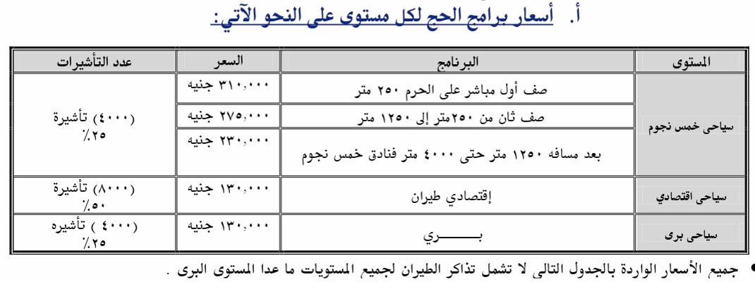 وحددت اللجنة العليا للحج والعمرة 8 آلاف تأشيرة للبرنامج الاقتصادي طيران، ووصل سعر البرنامج الاقتصادي طيران إلى 130 ألف جنيه وتم تحديد 4 آلاف تأشيرة لبرامج الحج البري إلى 130 ألف جنيه أيضا.