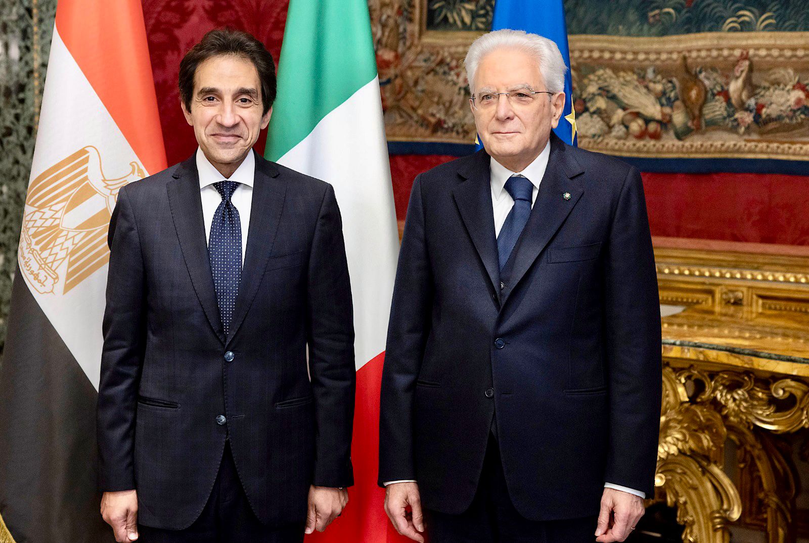 قدم السفير بسام راضي إلى الرئيس الإيطالي سيرجيو ماتاريلا أوراق اعتماده كسفير فوق العادة لمصر لدى الحكومة الإيطالية.