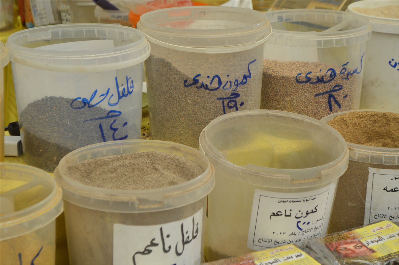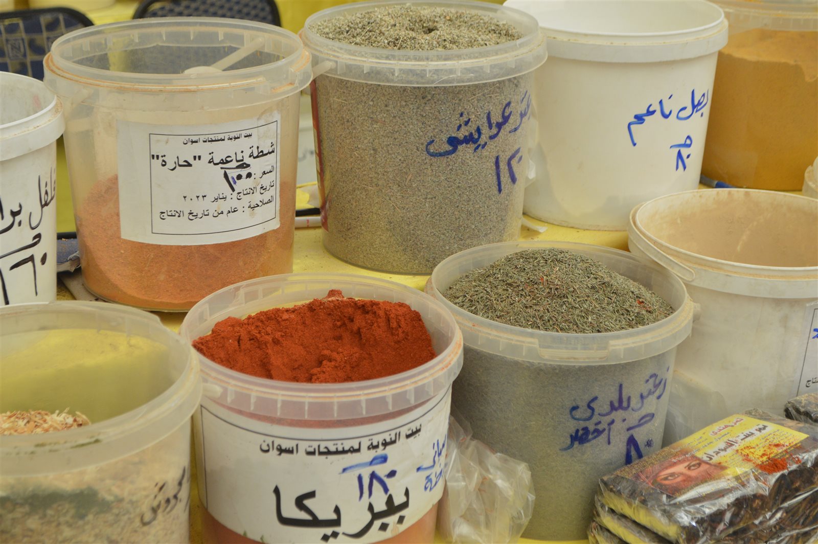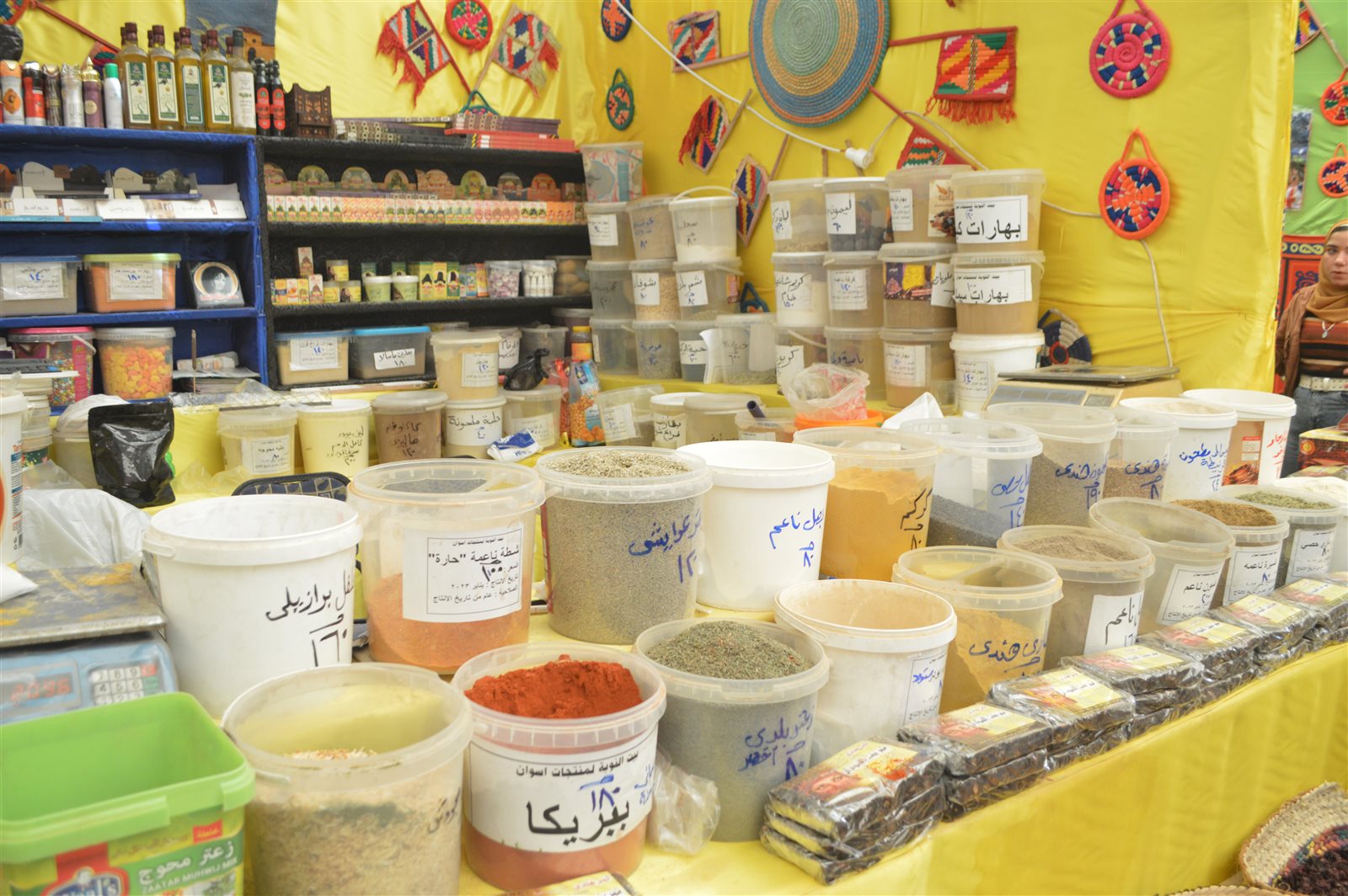 وشهد المعرض إقبالا كبيرا من الزوار تجاه البهارات خاصة أن معظمها قادما من أسوان.
