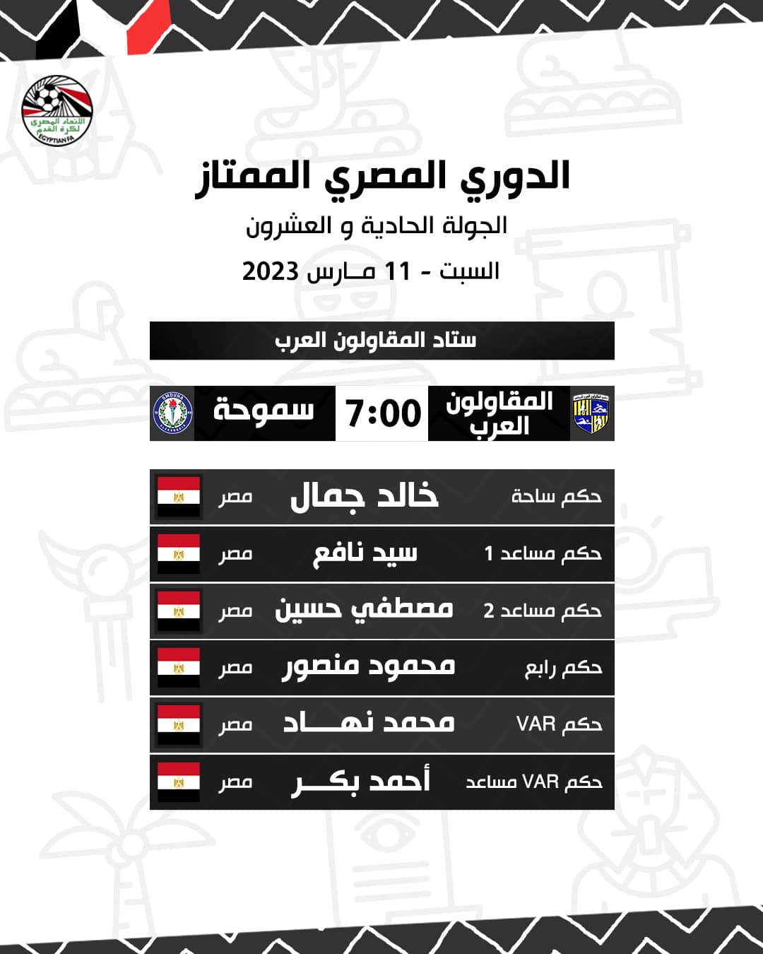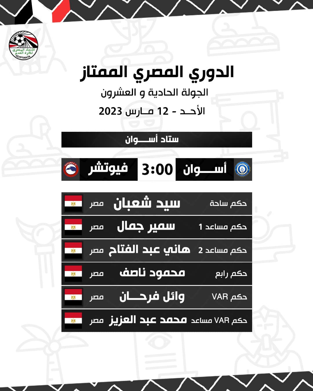 مباراة الزمالك أمام إنبي، يديرها عبد العزيز السيد كحكم ساحة، ويعاونه كل من وائل شعبان وعمر فتحي “حكمين مساعدين” وأسامة إسماعيل “حكم رابع” ومصطفى عثمان “حكم فيديو” وهشام الدسوقي “مساعد حكم فيديو”.