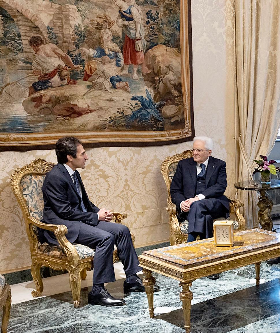 وصرح السفير بسام راضي بعد لقائه بالرئيس الإيطالى بالقصر الجمهوري بالعاصمة روما لتقديم أوراق اعتماده كسفير فوق العادة لمصر لدى الحكومة الإيطالية، بأنه نقل رسالة من الرئيس عبد الفتاح السيسي إلى الرئيس الإيطالي سيرجيو ماتاريلا تتعلق بتطوير العلاقات الثنائية بين مصر وإيطاليا وعدد من موضوعات التعاون المشترك على المستوى الإقليمي والدولي، وأوضح بسام راضي أن الرئيس الإيطالي طلب نقل تحياته للرئيس السيسي معبرًا عن تقديره البالغ لقيادته الحكيمة لمصر خلال السنوات الماضية وهي الدولة المحورية في منطقة المتوسط التي لها إسهامات هامة في إطار الأمن الإقليمي بأسره.