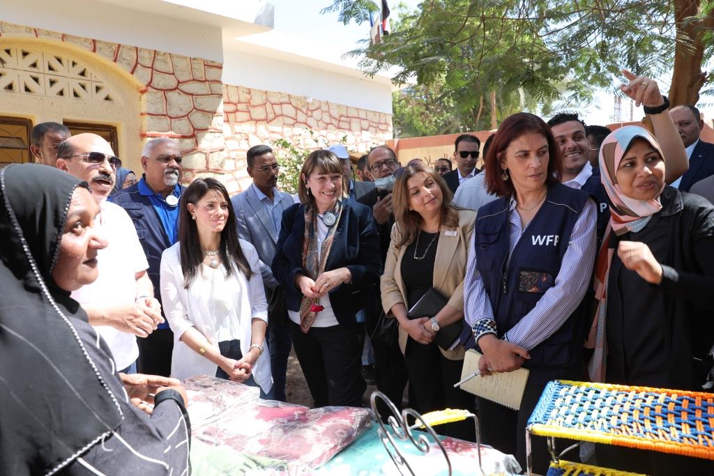 أجرت الوزيرة والمحافظ بزيارة مشروع الإستثمار فى رأس المال البشرى بريف صعيد مصر بمدرسة الرغامة البلد للتعليم المجتمعى بمركز كوم أمبو من ضمن 105 مدرسة للتعليم المجتمعى على مستوى المحافظة، والذى ينفذه برنامج الأغذية العالمى ( WFP ) ضمن 39 مدرسة مجتمعية تضم حوالى 1000 طالب وطالبة، موزعين فى 9 قرى ذات الأولوية وذلك بهدف تحسين الأمن الغذائي لحوالي 5 ألاف مواطن من أفراد هذه الأسر مما يساهم أيضًا فى تشجيع الطلاب على الإلتحاق والإنتظام بمدارسهم، ثم تم تفقد معرض للمشغولات اليدوية والملابس الجاهزة لسيدات القرية.