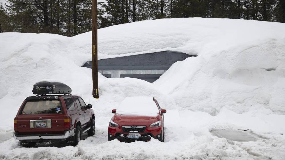 وفي شرق كاليفورنيا تغطي طبقة من الثلوج سماكتها غير عادية سلسلة جبال سييرا نيفادا منذ أسابيع.