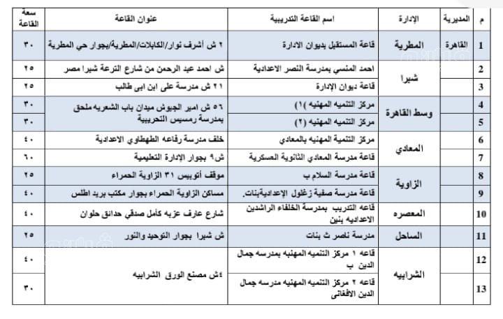وناشد موسى المعلمين المستهدفين إلى سرعة التوجه لمقرات التدريب بالإدارات التعليمية التابعة لهم، التى يتم الإعلان عنها في صفحة العلاقات العامة بمديرية التربية والتعليم بالقاهرة وذلك يوم الاثنين الموافق 13/3/2023.