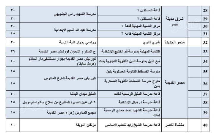 وأشار إلى أنه في حال اكتمال القاعة يتم التحويل إلى أقرب قاعة، كما أنه لا يجوز الانتقال إلى قاعة أخرى بعد الحضور في اليوم الأول.