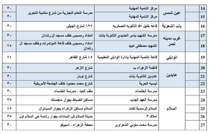 أعلنت مديرية التربية والتعليم بمحافظة القاهرة، عناوين ومقرات قاعات التدريب للمعلمين المستهدفين للتدريب بمسابقة الـ 30 ألف معلم مساعد، وذلك تبعًا لأقرب إدارة تعليمية لمحل السكن.