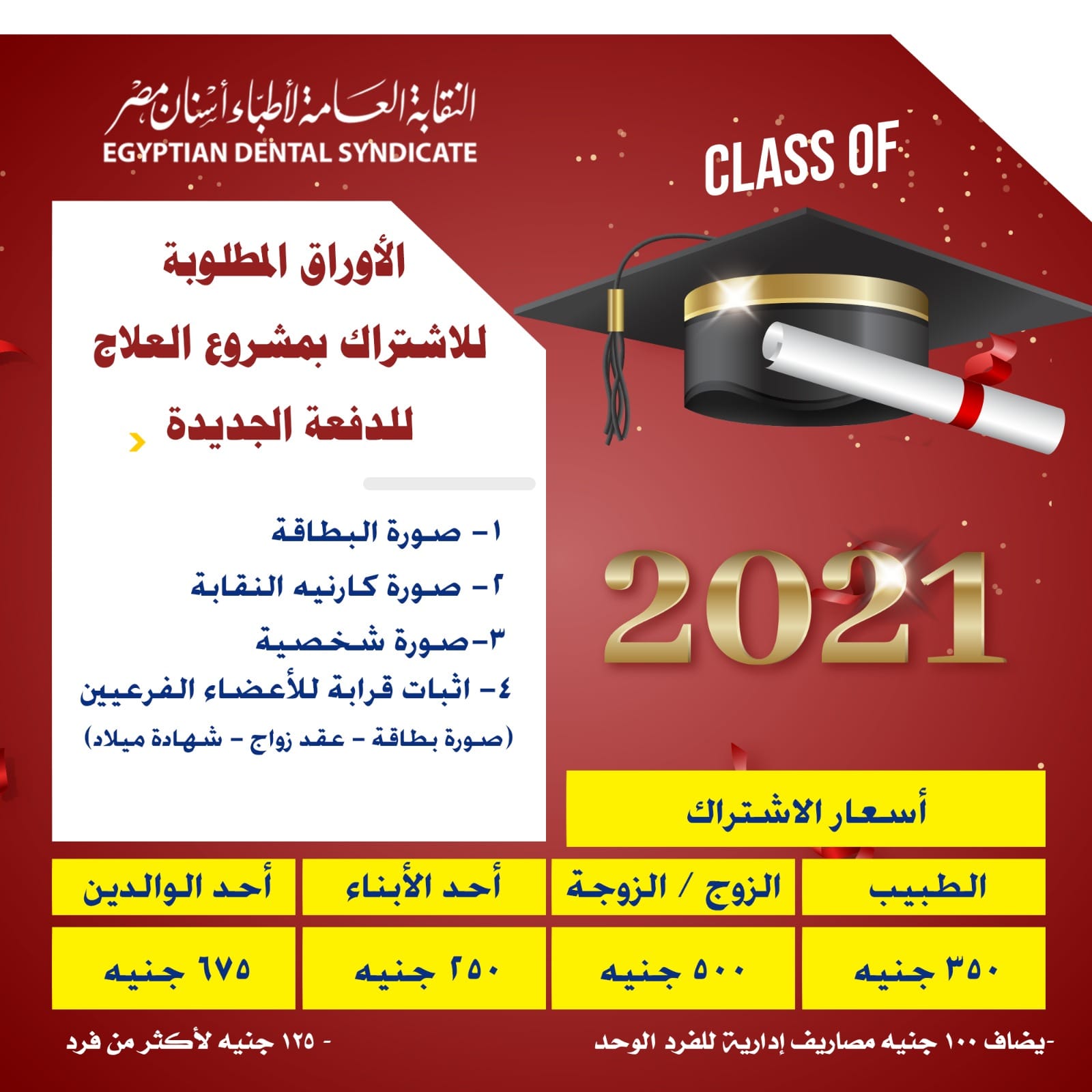 كما أعلنت نقابة الأسنان أسعار الاشتراك في مشروع العلاج.
