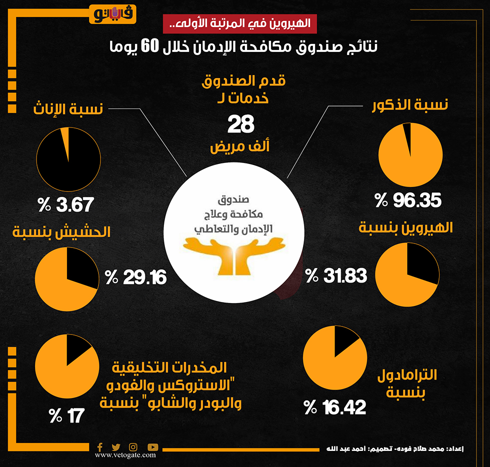الهيروين في المرتبة الأولى.. نتائج صندوق مكافحة الإدمان خلال 60 يوما (إنفوجراف) الأحد 12/مارس/2023 - 10:30 م 3/12/2023 10:30:44 PM صندوق مكافحة الإدمان والتعاطي - محمد صلاح فودة شارك طباعة 18 حجم الخط شارك طباعة صنوق مكافحة الإدمان صندزق مكافحة الإدمان صندوق مكافحة الإدمان صندوق مكافحة وعلاج الادمان والتعاطي