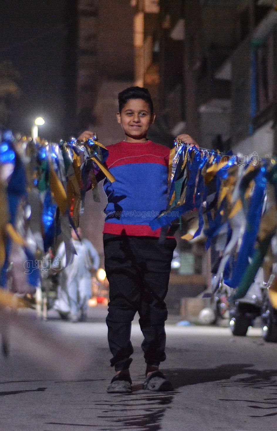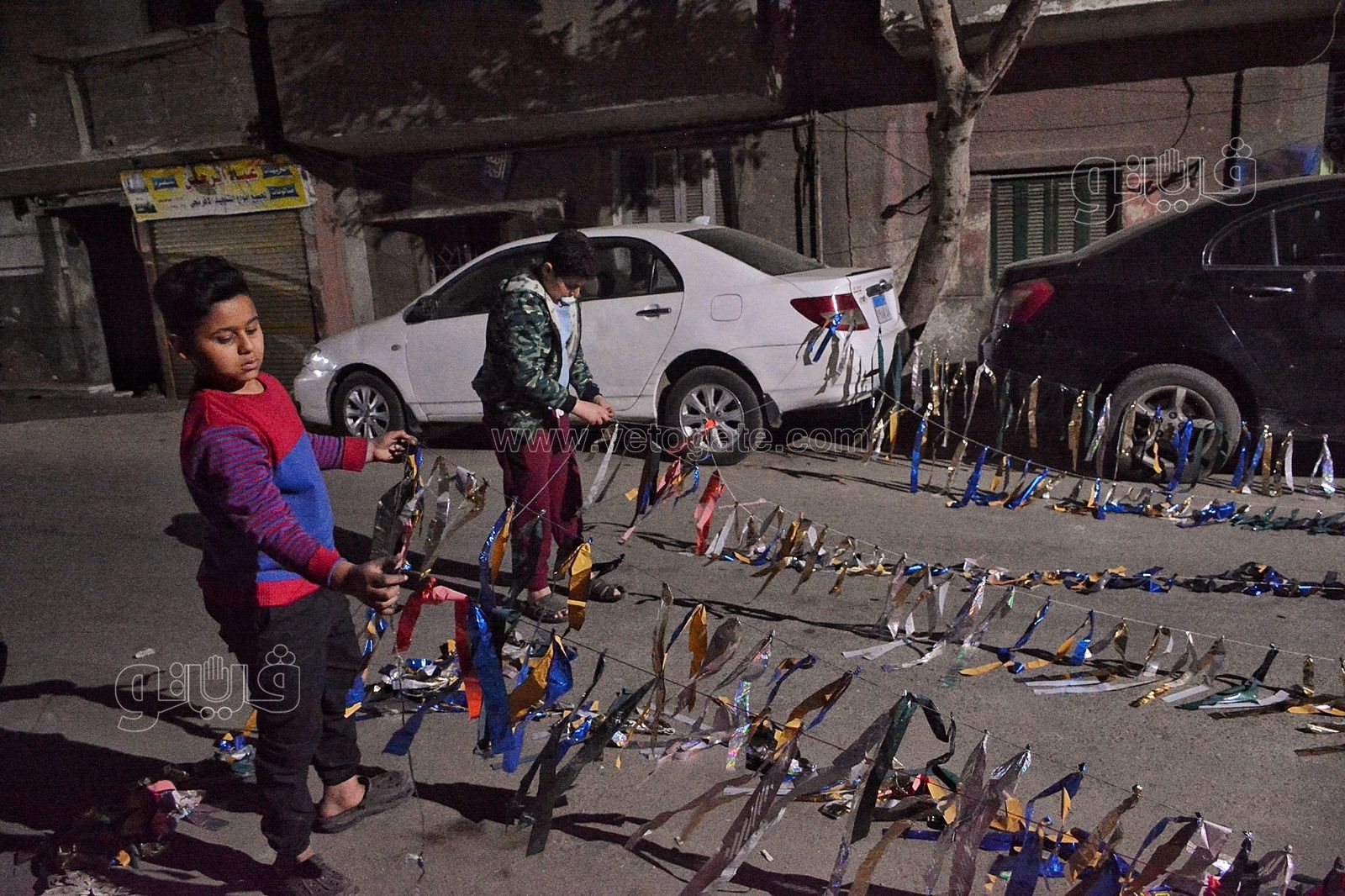 وفي إحدى الحارات الصغيرة تولى الطفلان عمر وياسين، مهمة تجميع أموال الزينة من السكان استعدادا لشرائها وتعليقها في الشوارع.