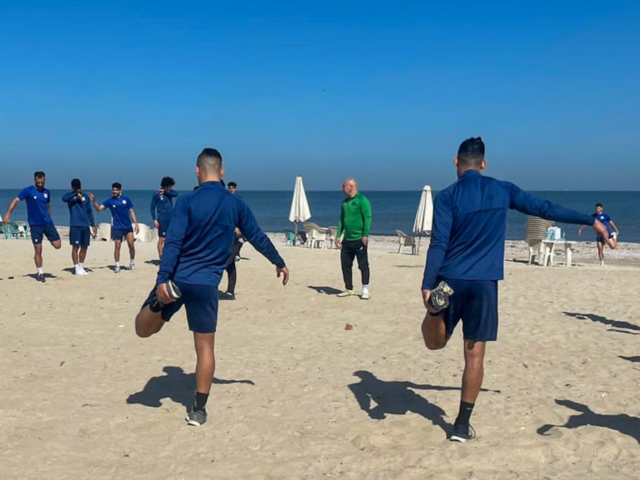 المصري يؤدي مرانه الصباحي على شاطئ البحر بقيادة العميد (صور)