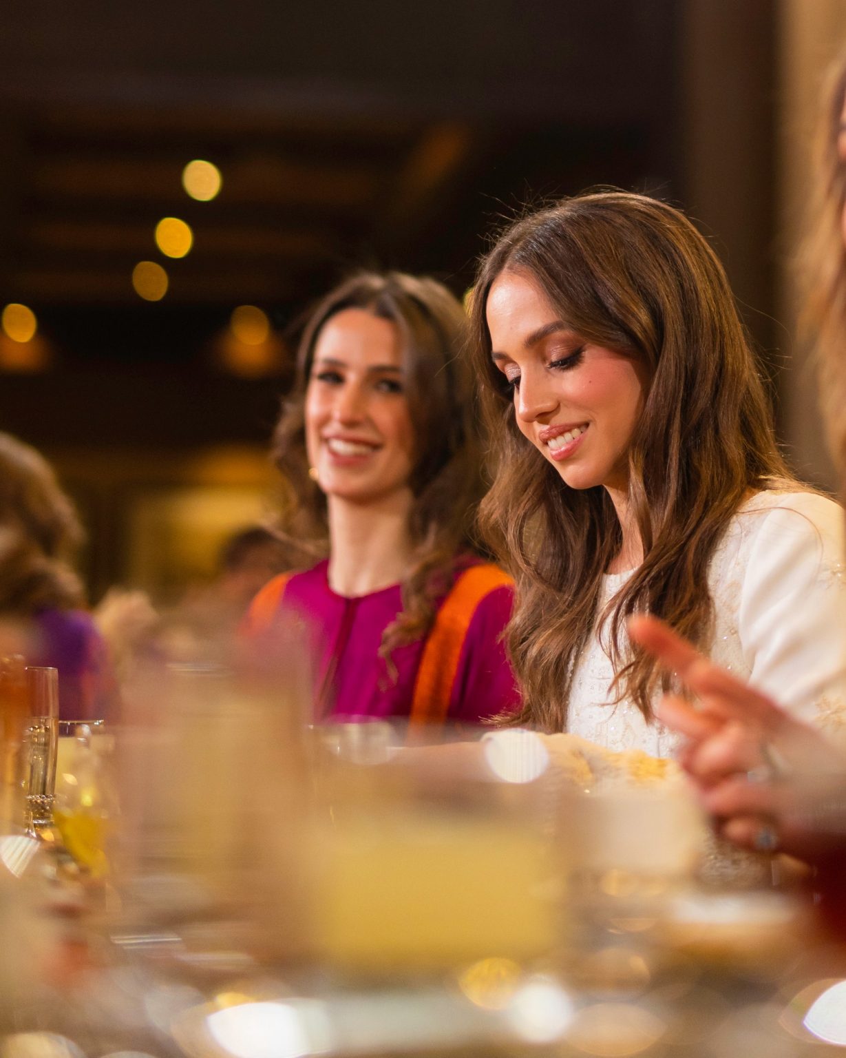 ونشرت الملكة الأردنية مقطع فيديو قصير يُظهر أجواء الحفل الذي يغلب عليه اللون الأبيض حيث تكسيه الورود البيضاء، الشموع البيضاء.