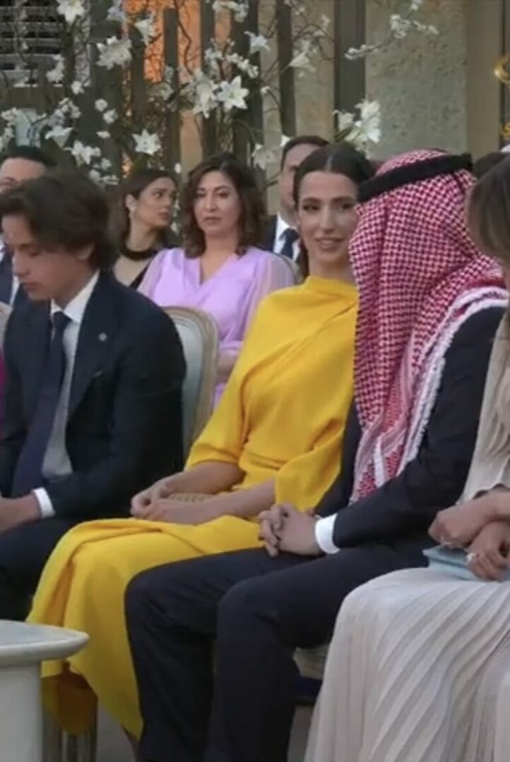 زفاف نجلة عاهل الأردن، تناقلت المواقع الإخبارية صورا لـ رجوة آل سيف، خطيبة ولي العهد الأردني الحسين بن عبد الله، خلال زفاف شقيقته الأميرة إيمان.
