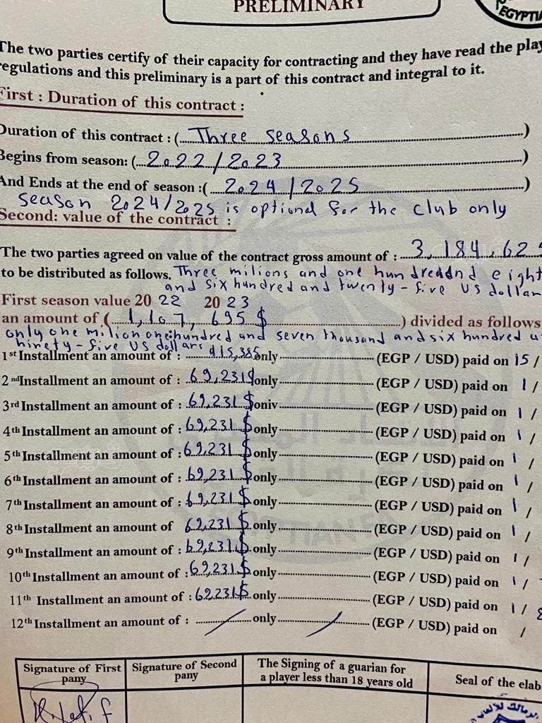 وأتى عقد إبراهيما نداي مع الزمالك كالتالي: