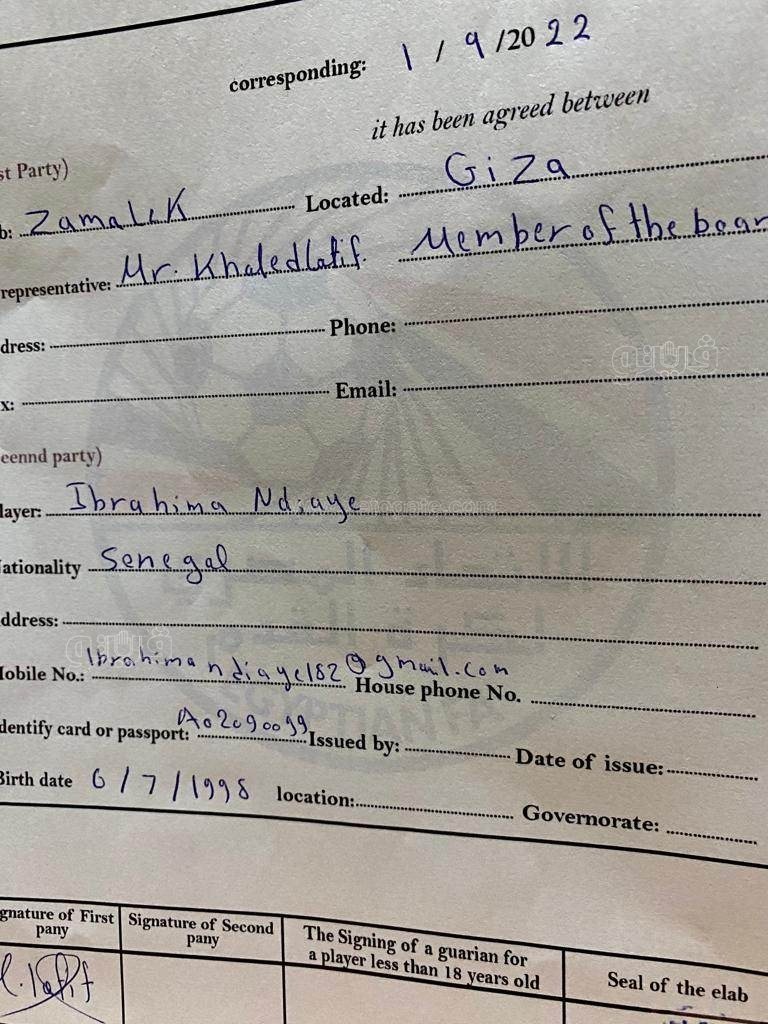 نادي الزمالك، حصلت “فيتو” على نسخة من عقد السنغالي إبراهيما نداي مع الزمالك الذي تعاقدت معه إدارة القلعة البيضاء في الميركاتو الصيفي الماضي.