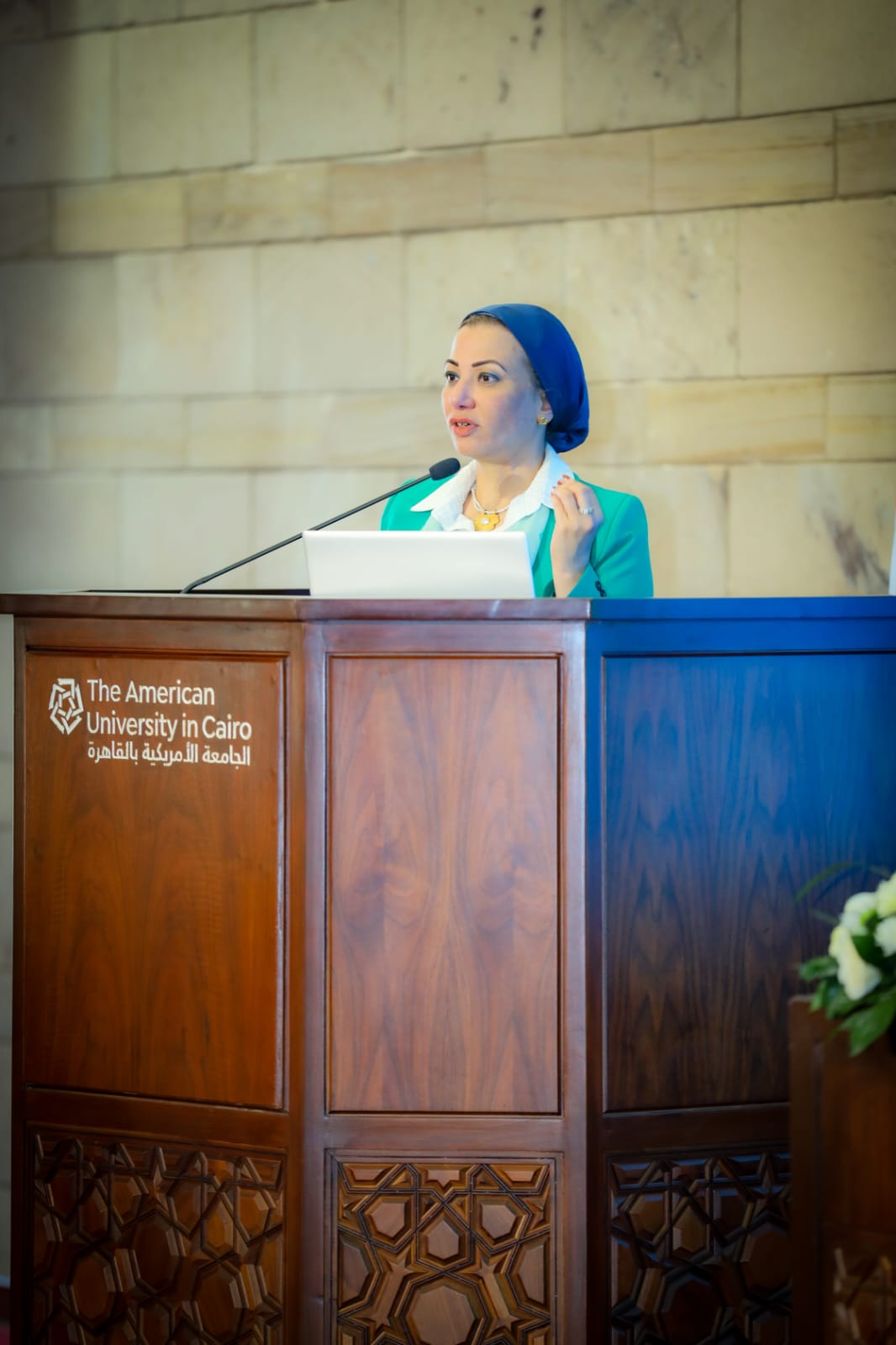 جاء ذلك خلال الكلمة التى ألقتها الدكتورة ياسمين فؤاد وزيرة البيئة، فى افتتاح النسخة الثامنة من المؤتمر السنوي للبحث والإبداع ٢٠٢٣، والذي تنظمه الجامعة الأمريكية بالقاهرة الجديدة، خلال الفترة من ١٢إلى ١٦ مارس الجارى بحضور الدكتور أحمد دلال رئيس الجامعة الامريكية بالقاهرة، الدكتور أدهم رمضان وكيل الشؤون الأكاديمية وعميد شئون الدراسات العليا ومنسق مبادرة التغير المناخي بالجامعة، والدكتور إيهاب عبد الرحمن وكيل الشئون الأكاديمية بالجامعة، والدكتور محمد حمزة ممثل الحكومة بالجامعة الأمريكية.