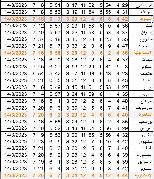 مواقيت الصلاة اليوم بتوقيت أسيوط