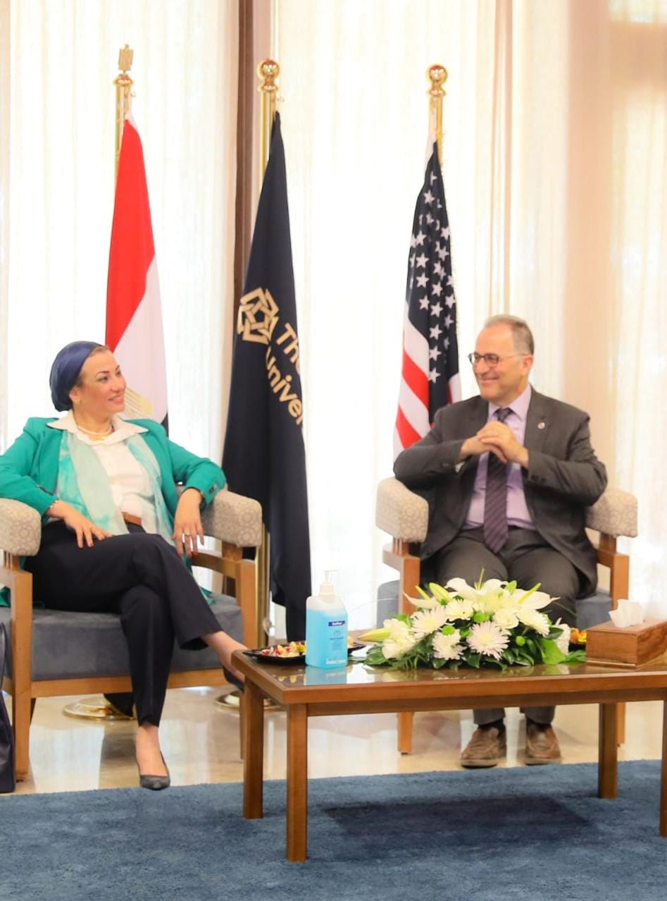 جاء ذلك خلال الكلمة التى ألقتها الدكتورة ياسمين فؤاد وزيرة البيئة، فى افتتاح النسخة الثامنة من المؤتمر السنوي للبحث والإبداع ٢٠٢٣، والذي تنظمة الجامعة الأمريكية بالقاهرة الجديدة، خلال الفترة من ١٢إلى ١٦ مارس الجارى بحضور الدكتور أحمد دلال رئيس الجامعة الامريكية بالقاهرة، الدكتور أدهم رمضان وكيل الشئون الأكاديمية وعميد شئون الدراسات العليا ومنسق مبادرة التغير المناخي بالجامعة، والدكتور إيهاب عبد الرحمن وكيل الشئون الأكاديمية بالجامعة، والدكتور محمد حمزة ممثل الحكومة بالجامعة الأمريكية.