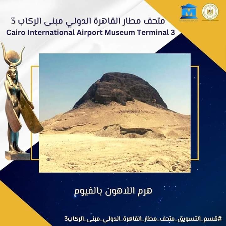 وعرضت الصفحة الرسمية لمتحف مطار القاهرة الدولي صورا لهرم مدينة اللاهون في محافظة الفيوم، وهو أحد أهرامات مصر بناه الملك سنوسرت الثاني من ملوك الأسرة 12 من الطوب اللبن فوق ربوة عالية ارتفاعها 12 مترًا على مشارف مدينة اللاهون.