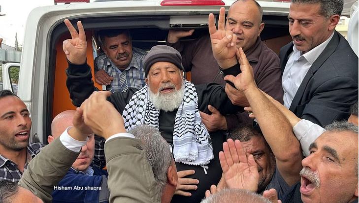 لحظة إخلاء سبيل فؤاد الشوبكي شيخ الأسرى الفلسطينيين (فيديو وصور)