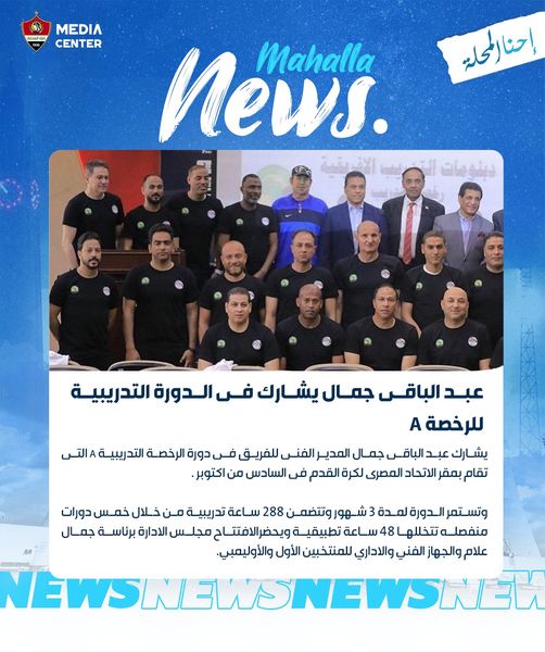 شهد مران غزل المحلة عصر اليوم غياب المدير الفني عبد الباقي جمال بسبب وجوده في مقر اتحاد الكرة للحصول على رخصة التدريب A.
