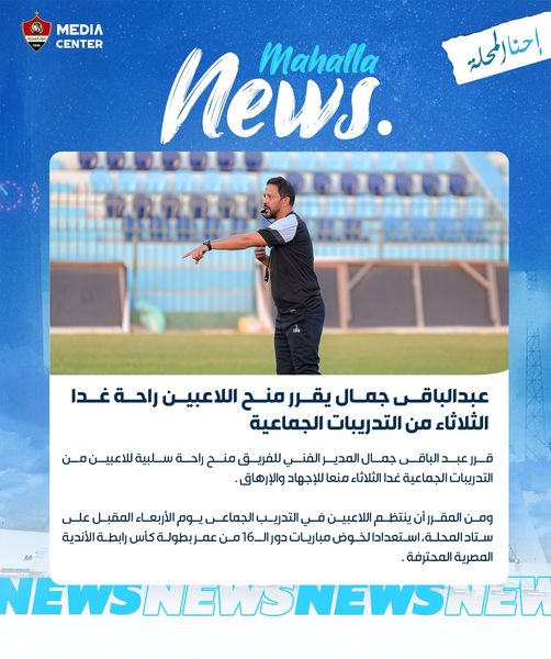 ومن المقرر أن ينتظم اللاعبون في التدريب الجماعي يوم الأربعاء المقبل على ستاد المحلة، استعدادا لخوض مباريات دور الـ16 من عمر بطولة كأس رابطة الأندية المصرية المحترفة