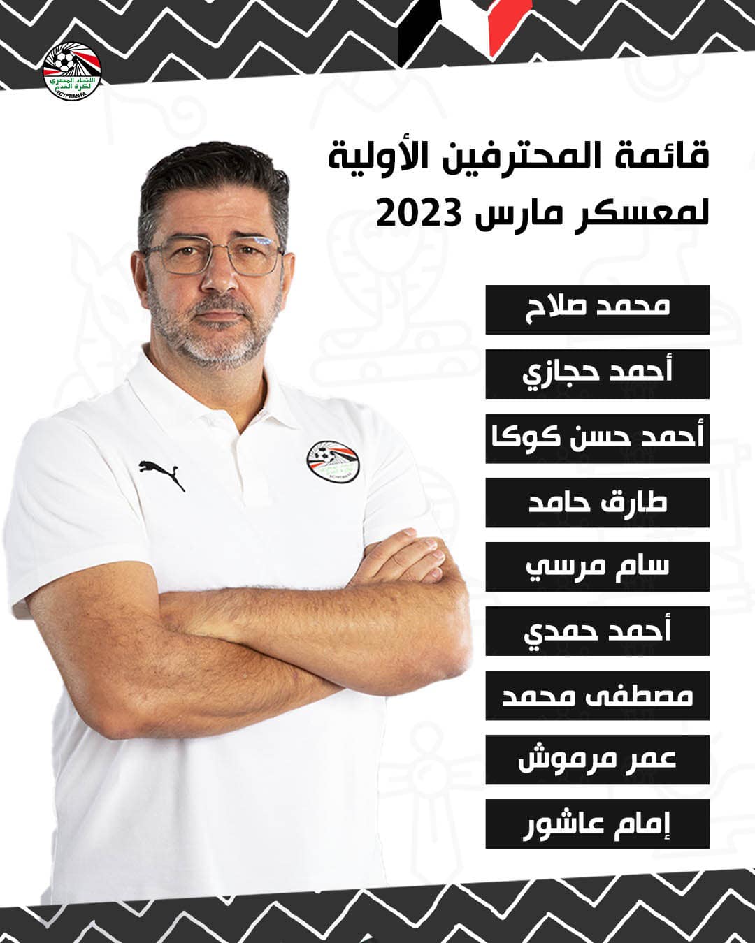 وضمت قائمة اللاعبين المحترفين لمعسكر منتخب مصر كلا من: