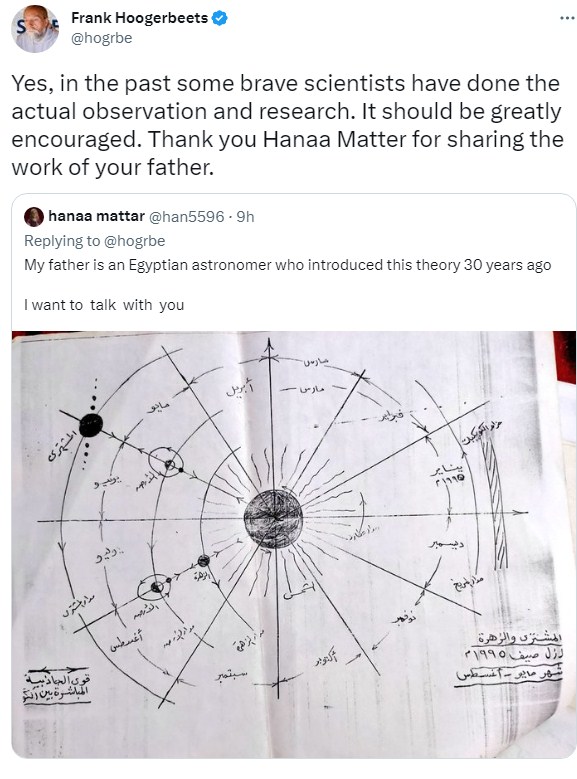 ورد الباحث الهولندي فرانك هوجربتس على رسالة هناء مطر ابنة الباحث المصري محمد سالم مطر فقال: "نعم، في الماضي قام بعض العلماء الذين يتصفون بالشجاعة بالملاحظة والبحث الفعليين. يجب تشجيعه بشكل كبير. شكرا لك هناء مطر لمشاركة عمل والدك."