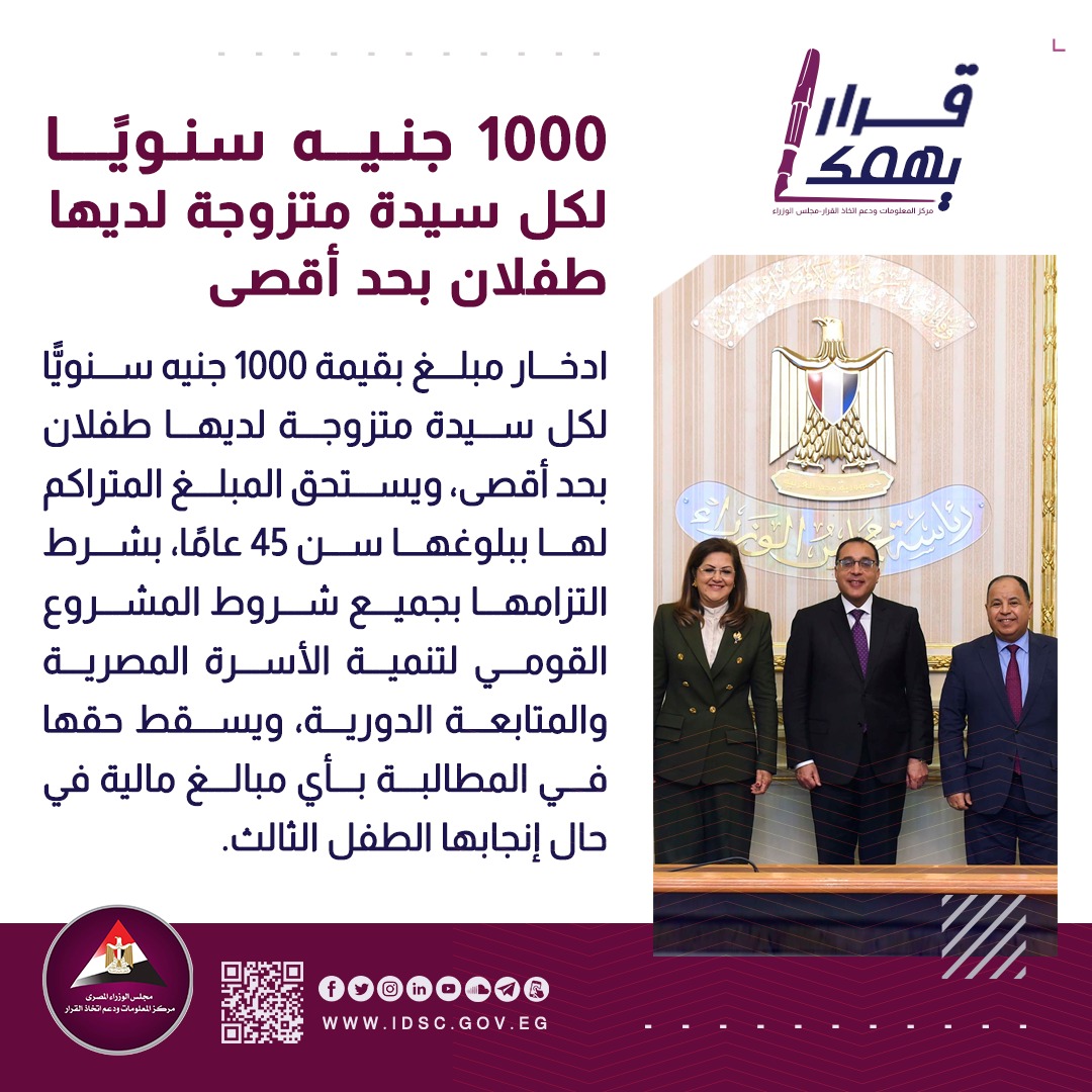1000 جنيه لكل سيدة تنجب طفلين فقط، وهذا موعد استلام المنحة