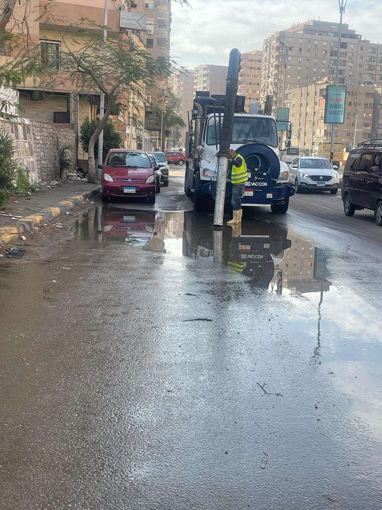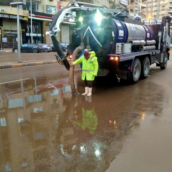 الدفع بـ 4 شفاطات لمياه الأمطار بميدان الرماية وطريق المنصورية (صور)